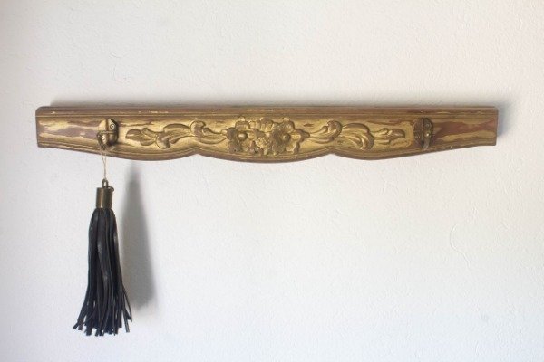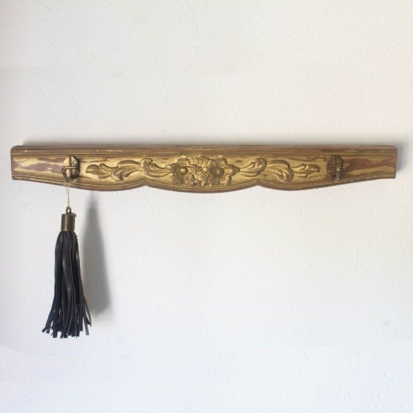 De madera reciclada con dos perchitas en bronce viejo.